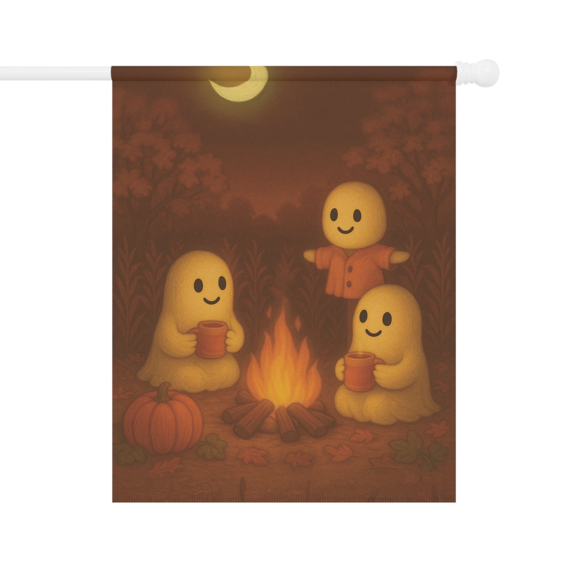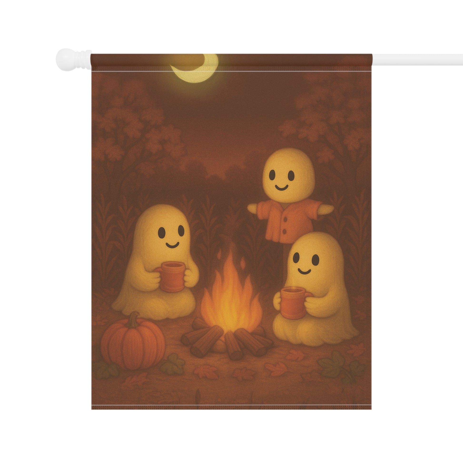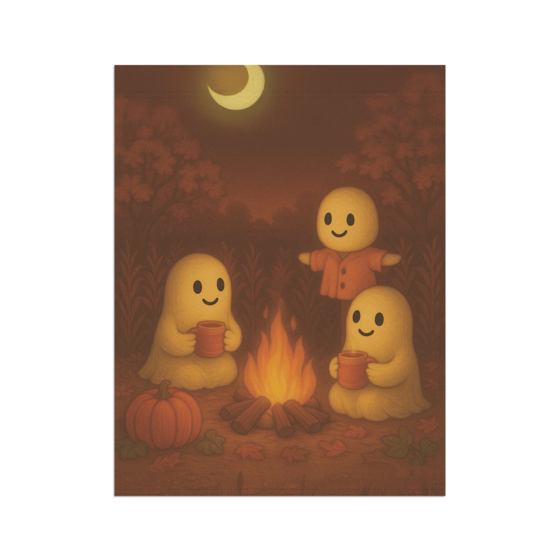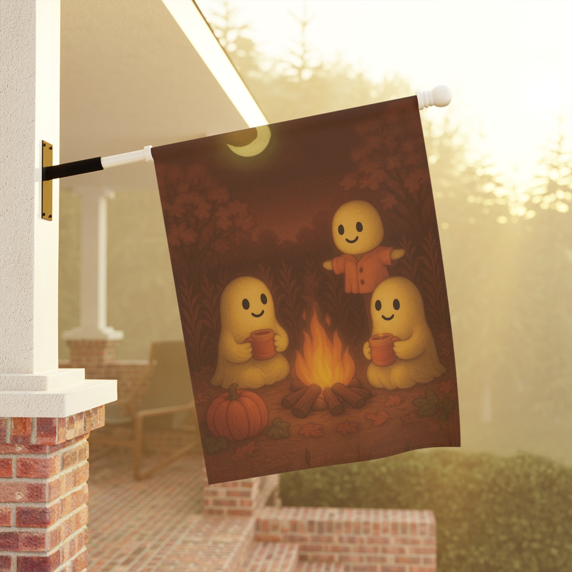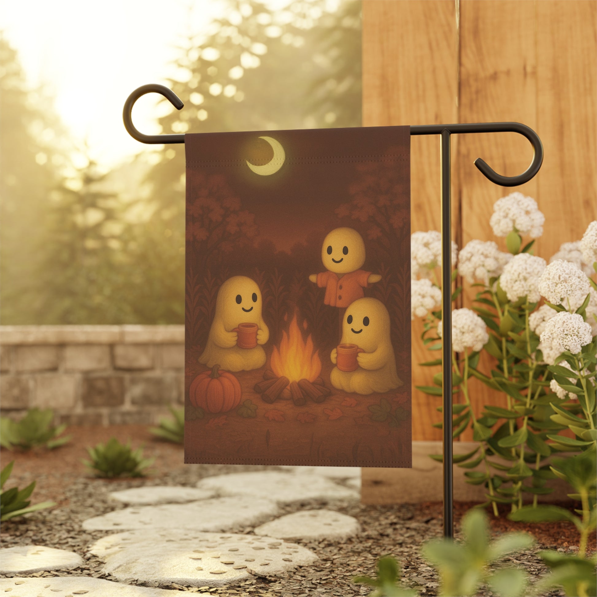 Add a warm and inviting touch to your outdoor space with this charming garden banner. Perfect for celebrating the autumn season, this decorative piece features a delightful ghost campfire scene that brings a sense of coziness and warmth. Its warm colors and whimsical design are sure to catch the eye of visitors, making it an ideal addition for Halloween gatherings. Each piece is thoughtfully designed by us with the help of AI, then professionally produced by a trusted print provider to ensure stunning quality and lasting beauty.
