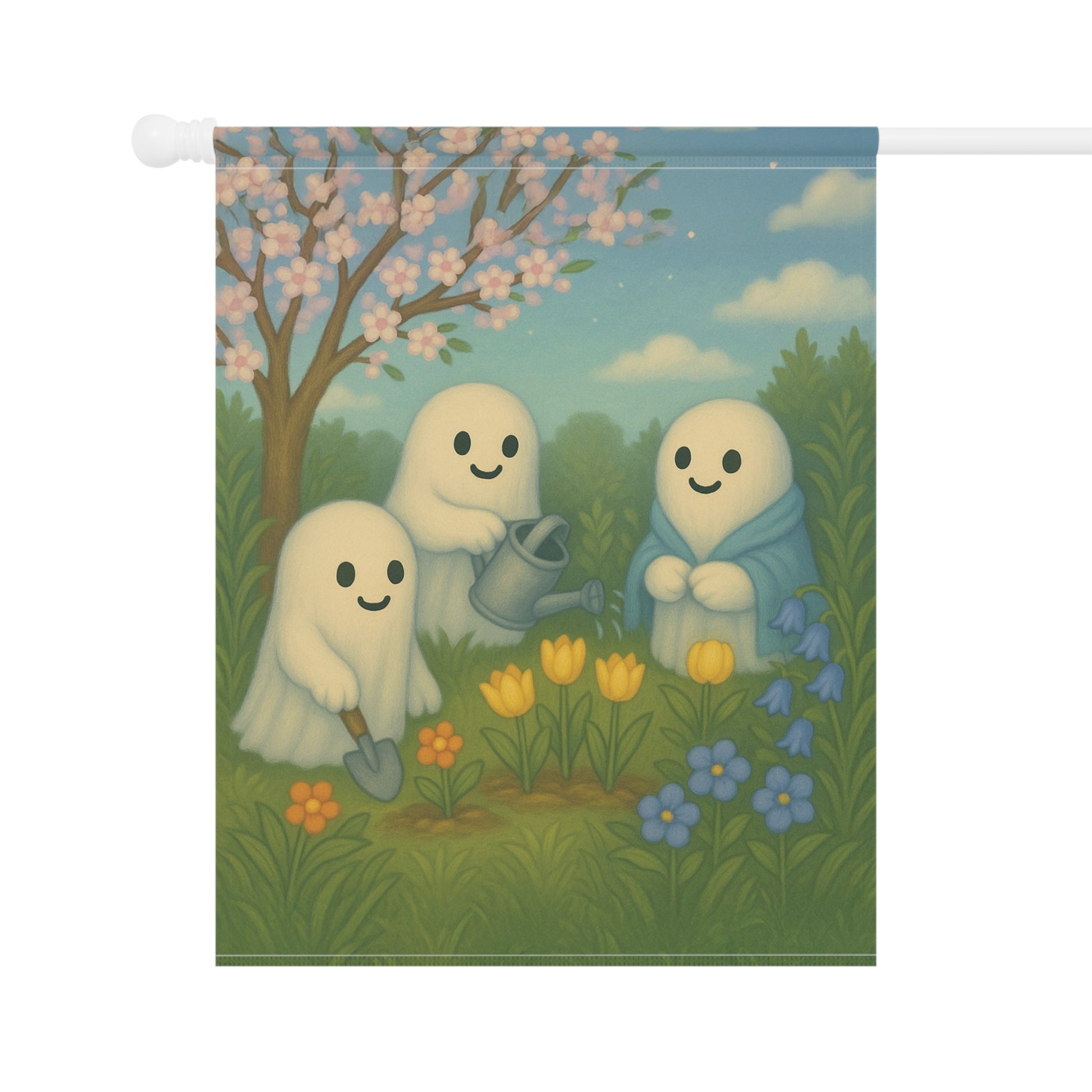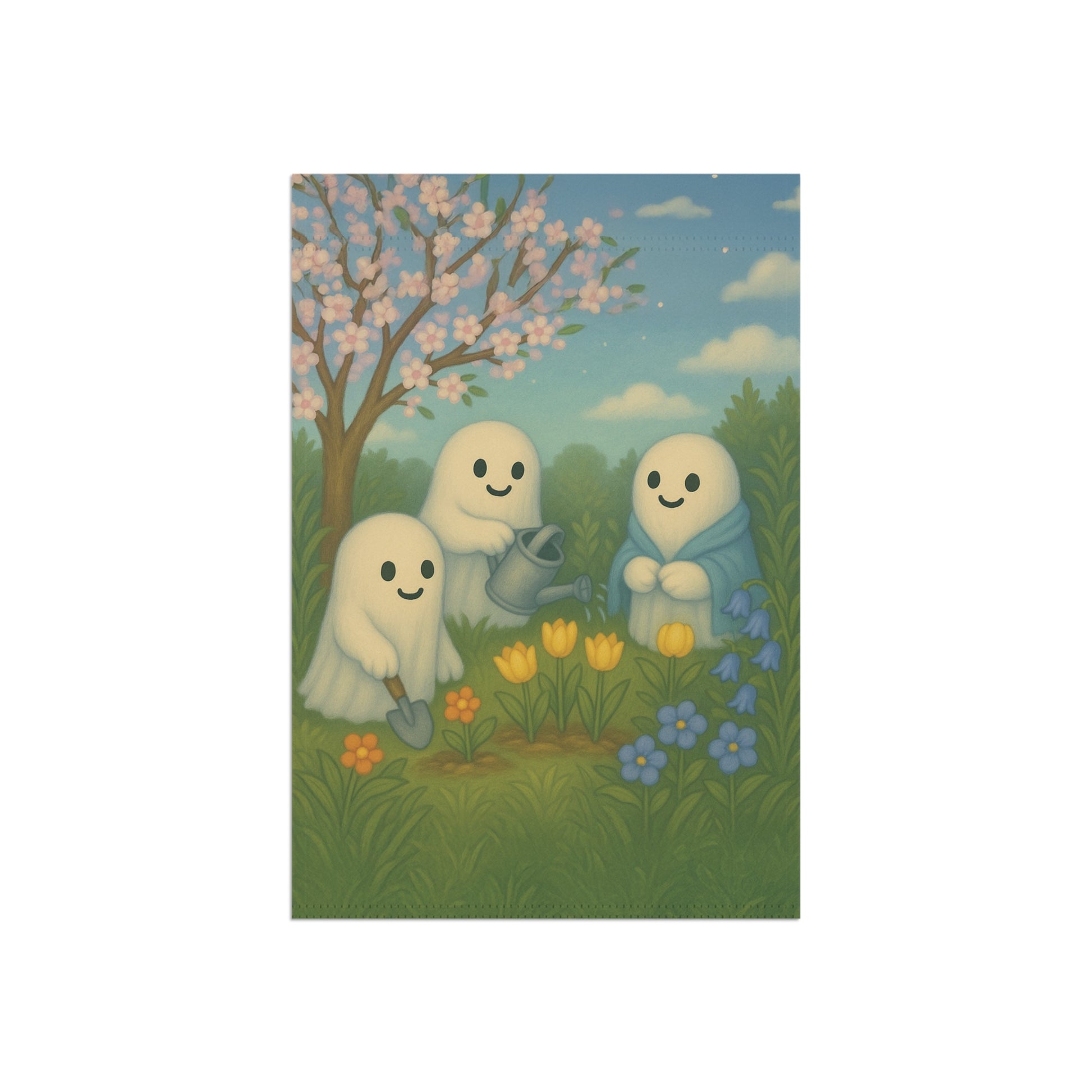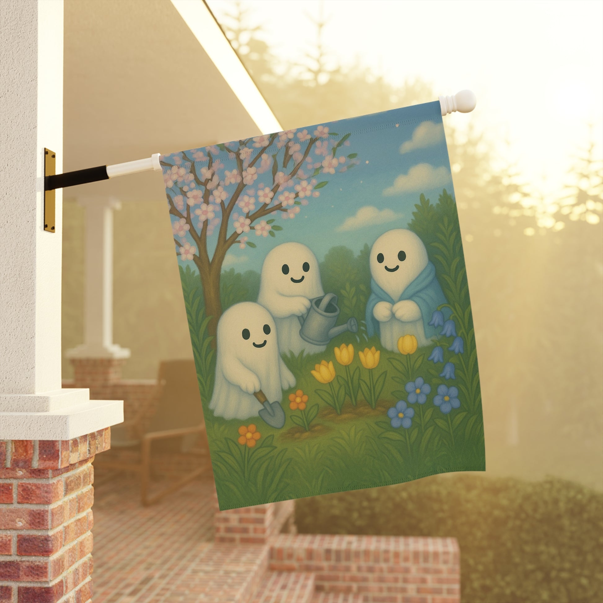 Add a warm and inviting touch to your outdoor space with this charming garden banner. Perfect for celebrating the spring season, this decorative piece features a delightful ghost gardening scene. Its whimsical design is sure to catch the eye of visitors, making it an ideal addition for family and friend gatherings. Each piece is thoughtfully designed by us with the help of AI, then professionally produced by a trusted print provider to ensure stunning quality and lasting beauty.