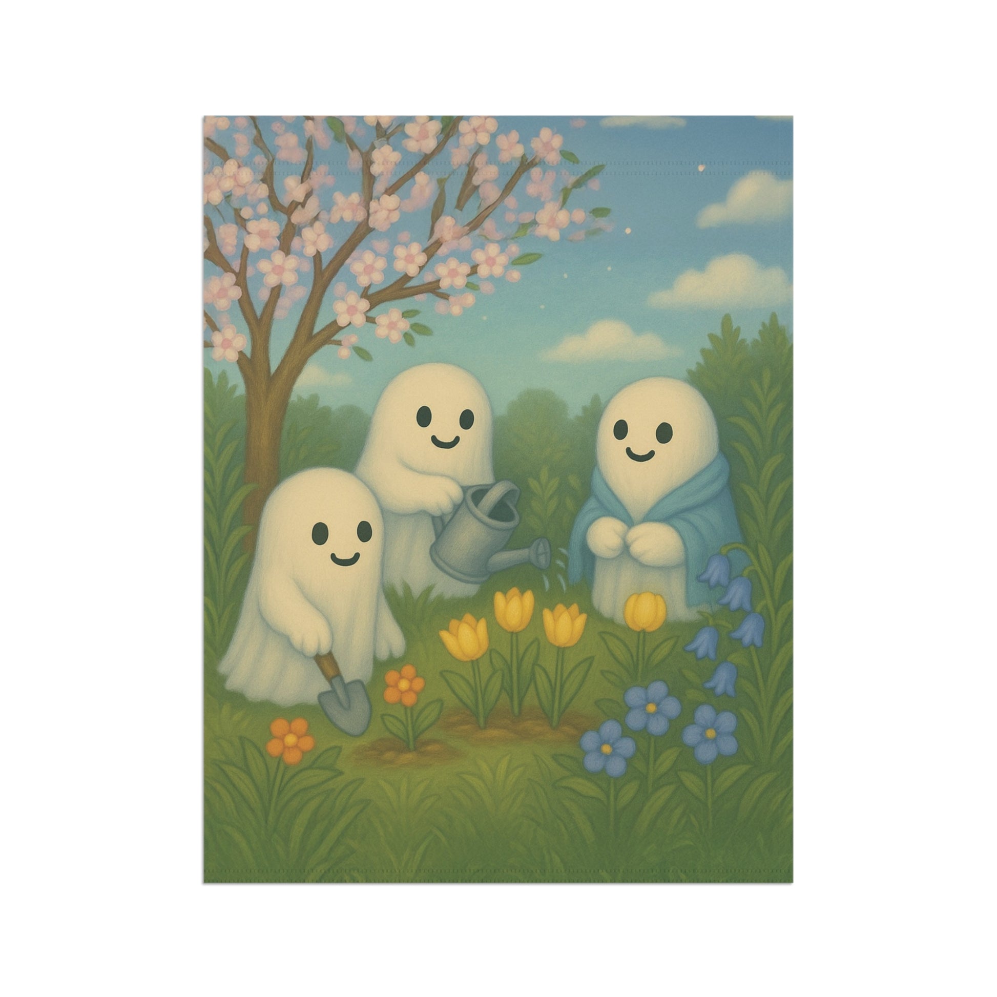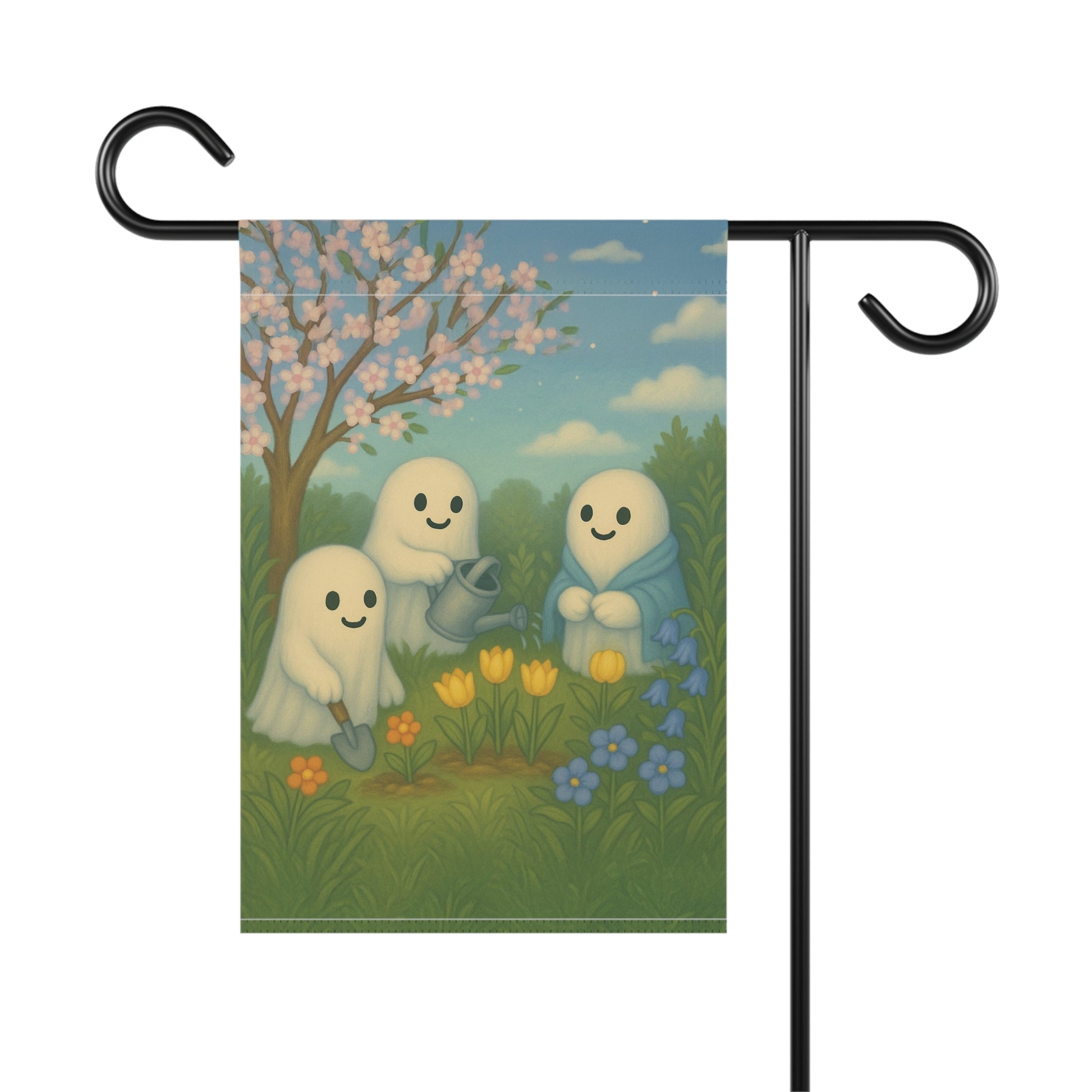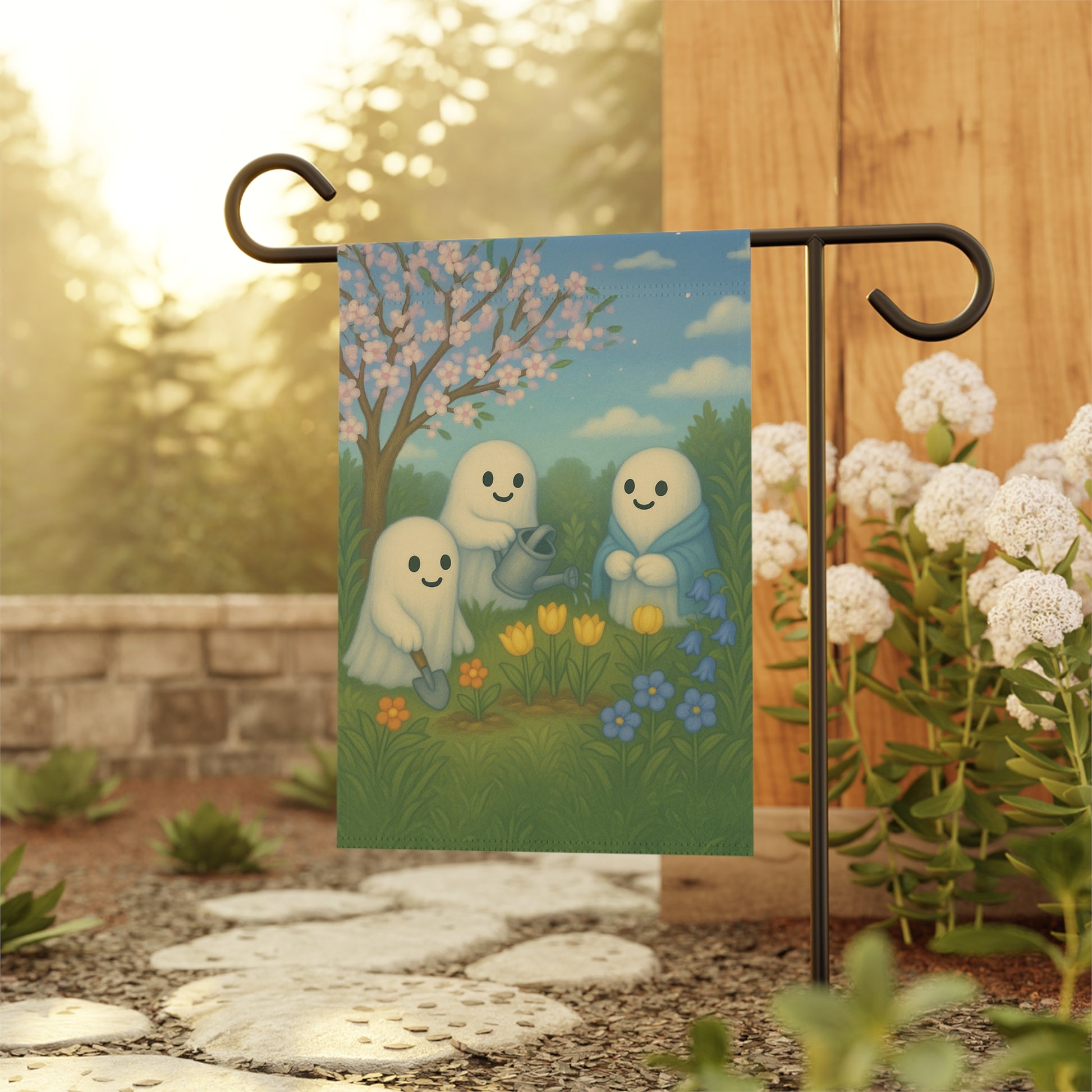 Add a warm and inviting touch to your outdoor space with this charming garden banner. Perfect for celebrating the spring season, this decorative piece features a delightful ghost gardening scene. Its whimsical design is sure to catch the eye of visitors, making it an ideal addition for family and friend gatherings. Each piece is thoughtfully designed by us with the help of AI, then professionally produced by a trusted print provider to ensure stunning quality and lasting beauty.