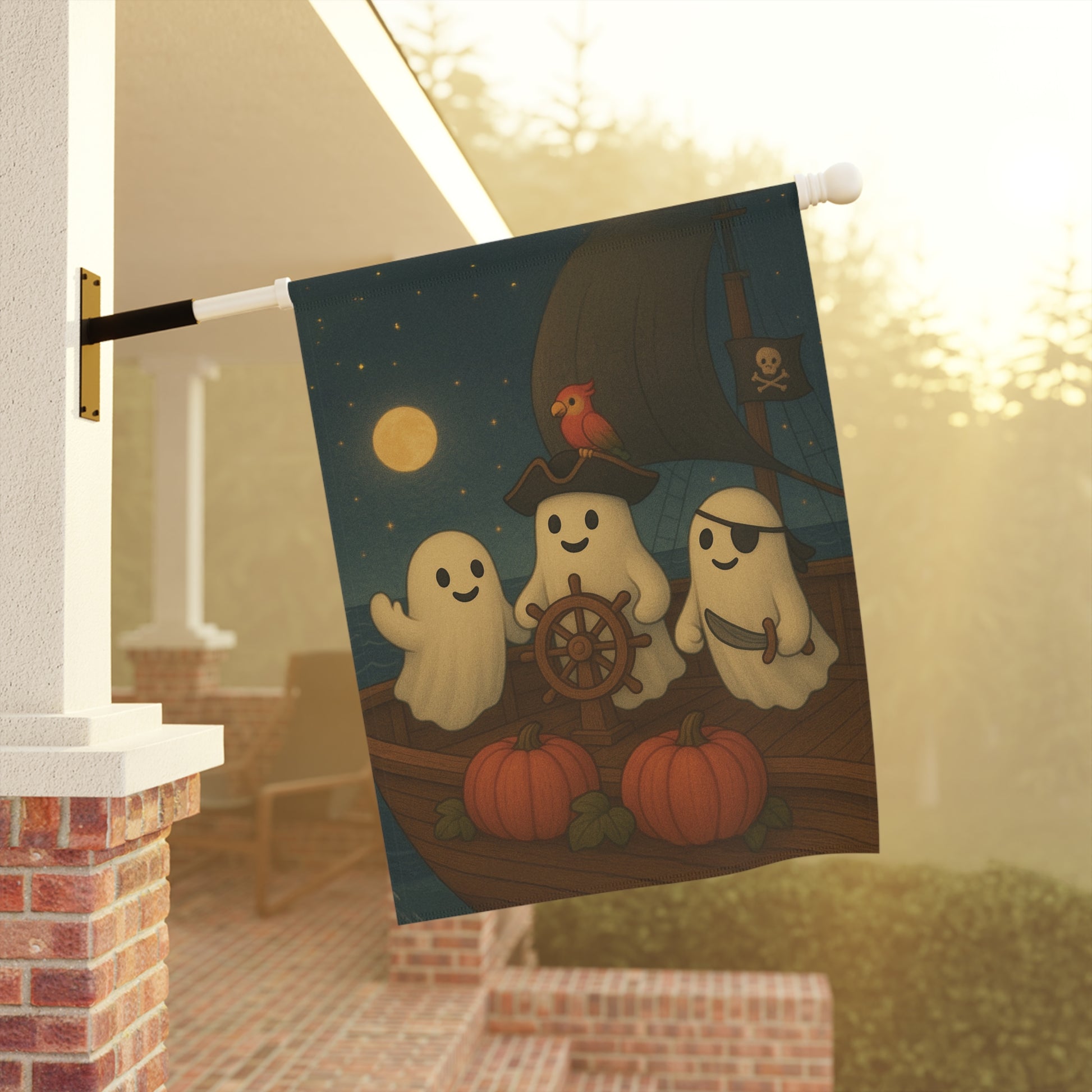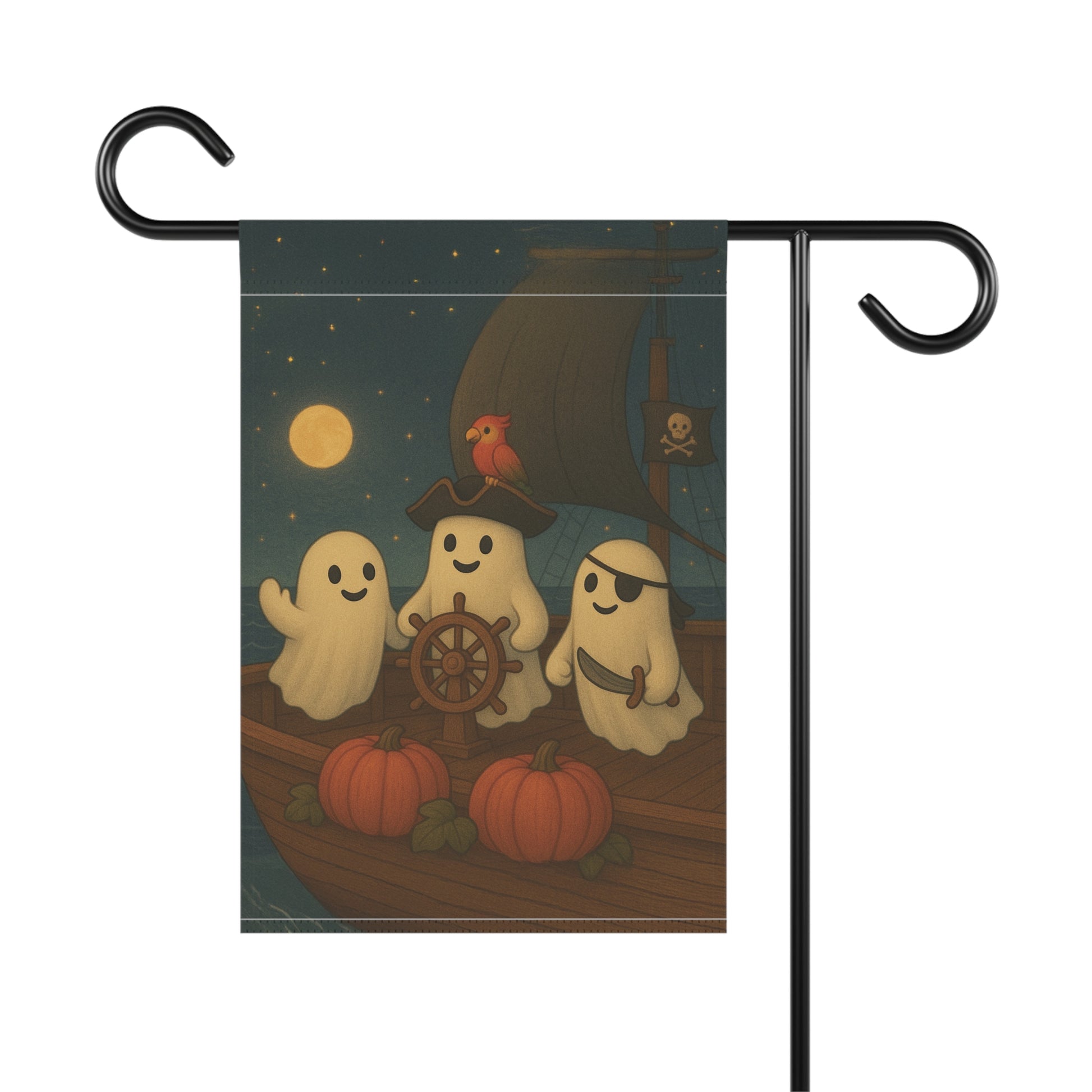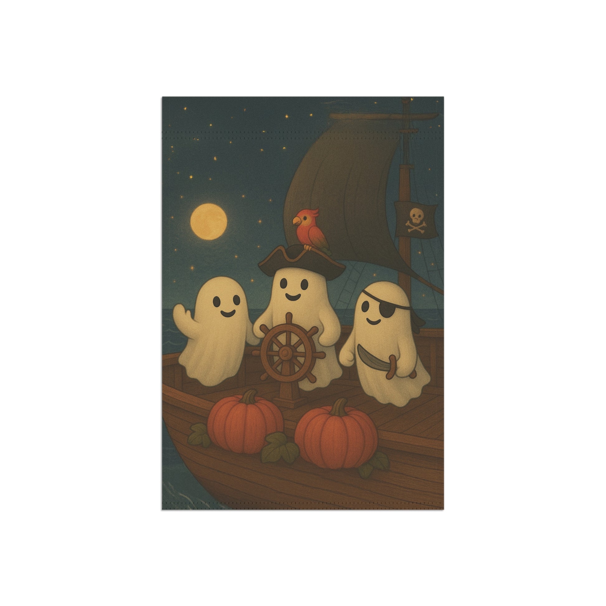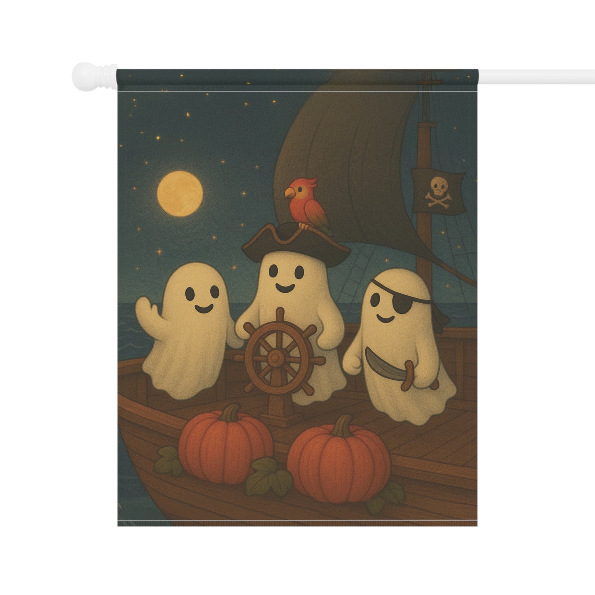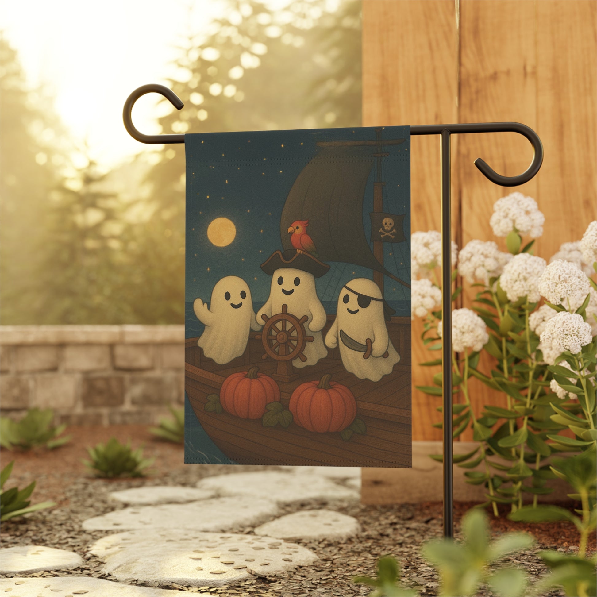 Add a warm and inviting touch to your outdoor space with this charming garden banner. Perfect for celebrating the autumn season, this decorative piece features a delightful ghost pirate scene that brings a sense of adventure. Its vibrant colors and whimsical design are sure to catch the eye of visitors, making it an ideal addition for Halloween gatherings. Each piece is thoughtfully designed by us with the help of AI, then professionally produced by a trusted print provider to ensure stunning quality and lasting beauty.