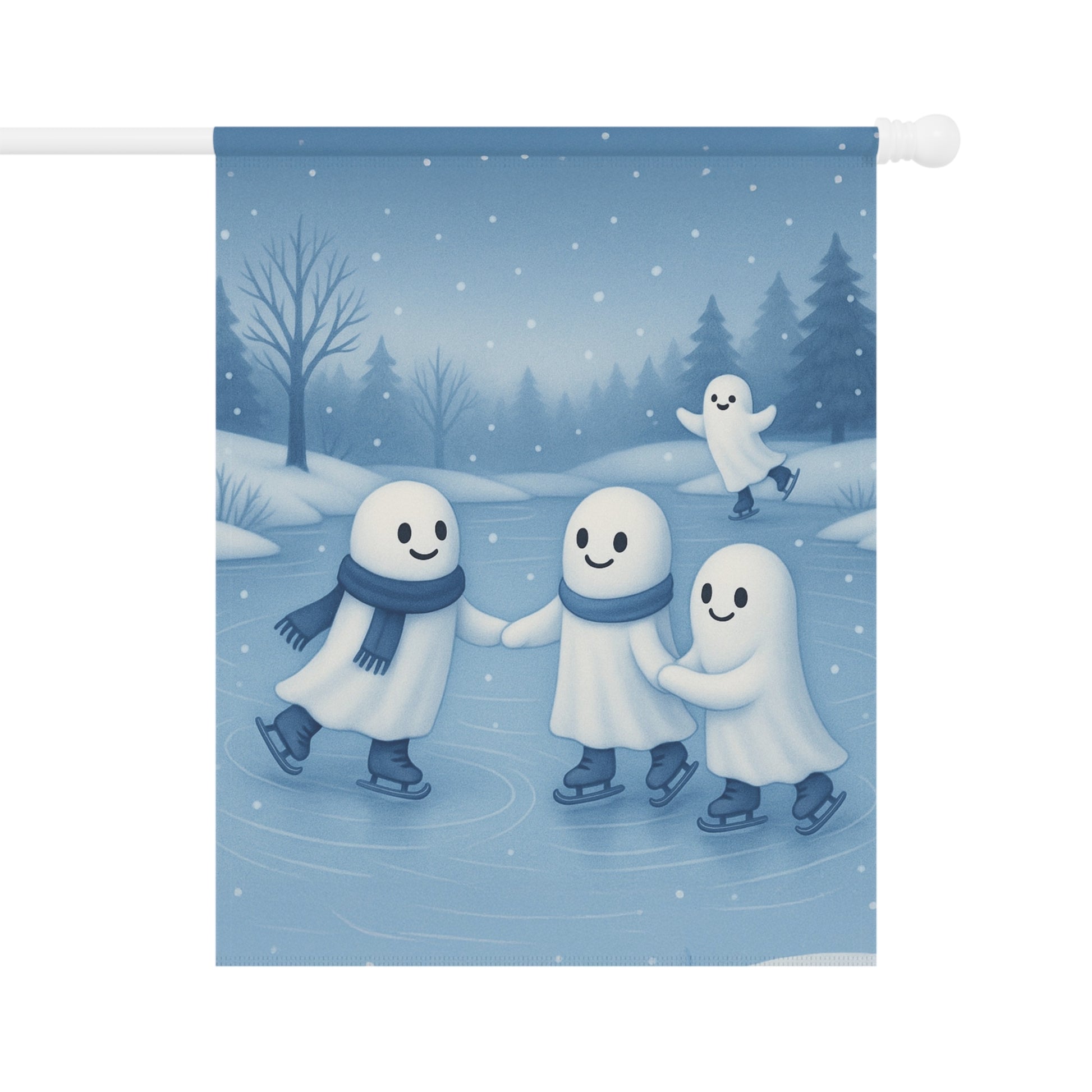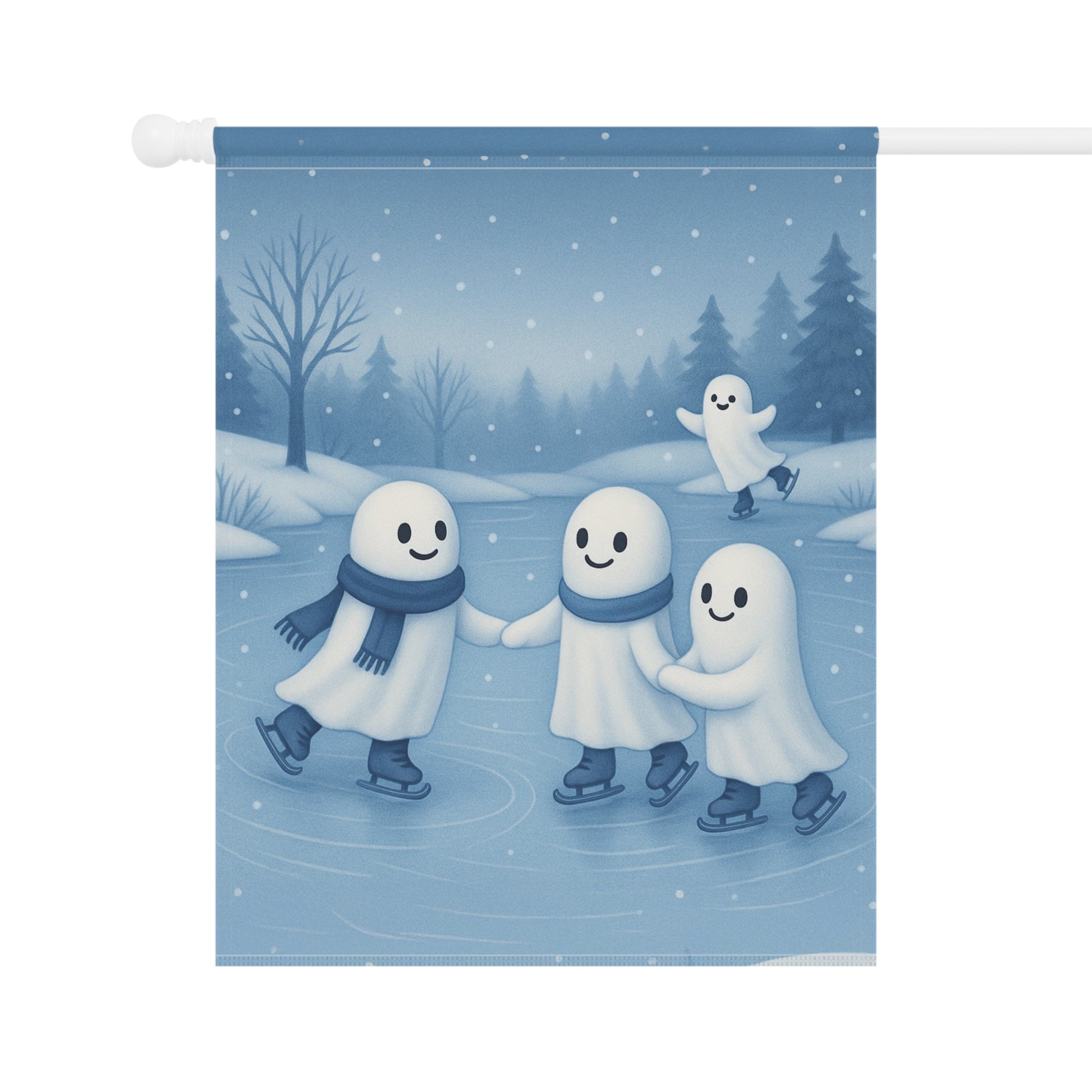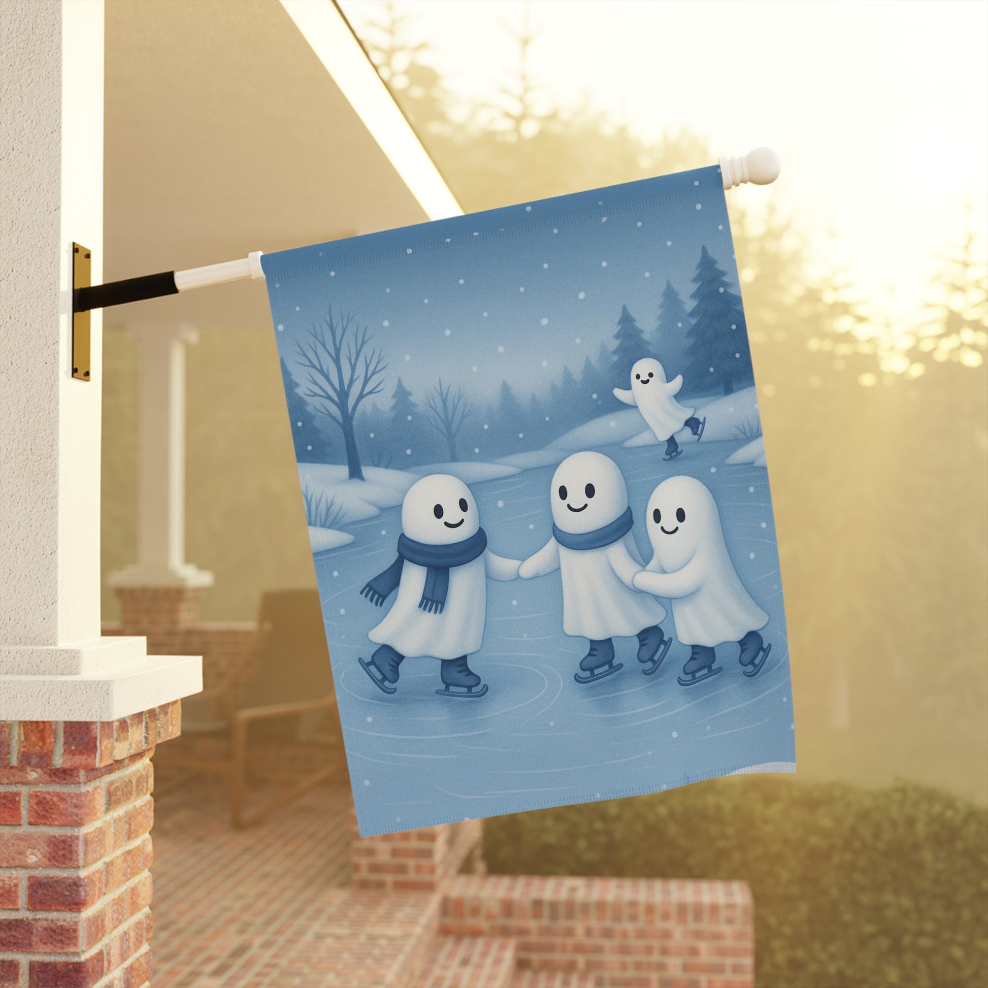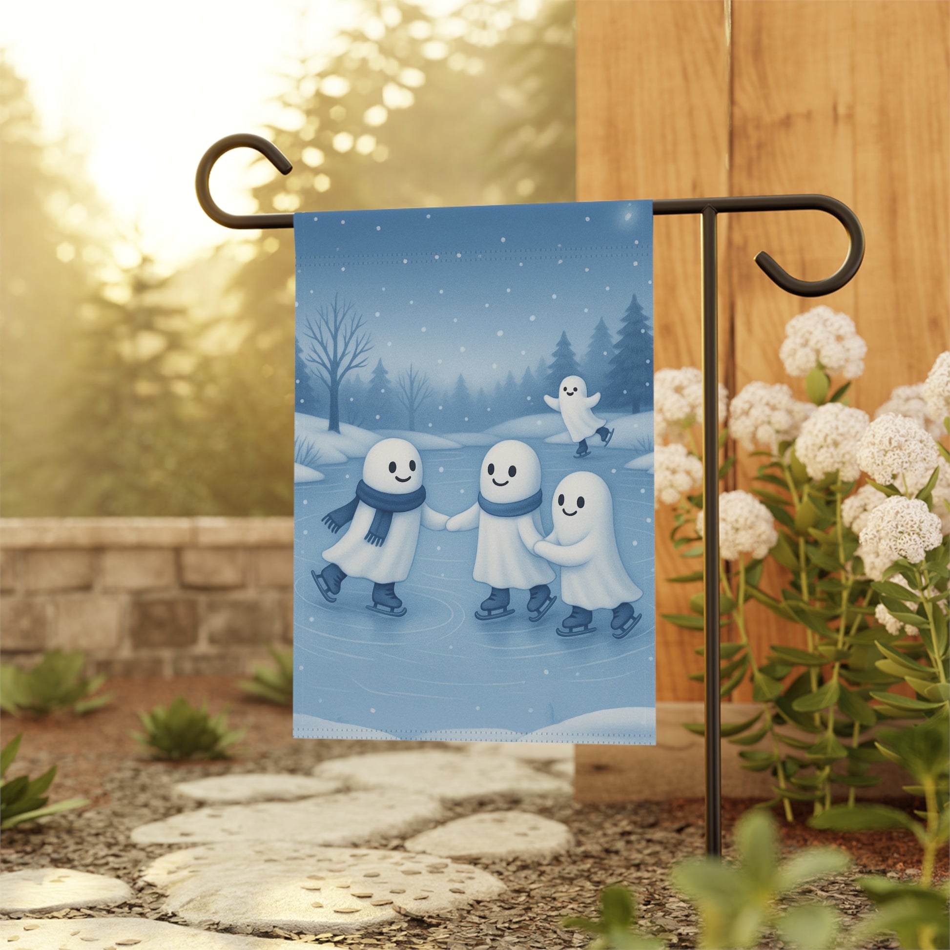 Add a warm and inviting touch to your outdoor space with this charming garden banner. Perfect for celebrating the winter season, this decorative piece features a delightful ghost ice skating scene. Its whimsical design is sure to catch the eye of visitors, making it an ideal addition for family and friend gatherings. Each piece is thoughtfully designed by us with the help of AI, then professionally produced by a trusted print provider to ensure stunning quality and lasting beauty.