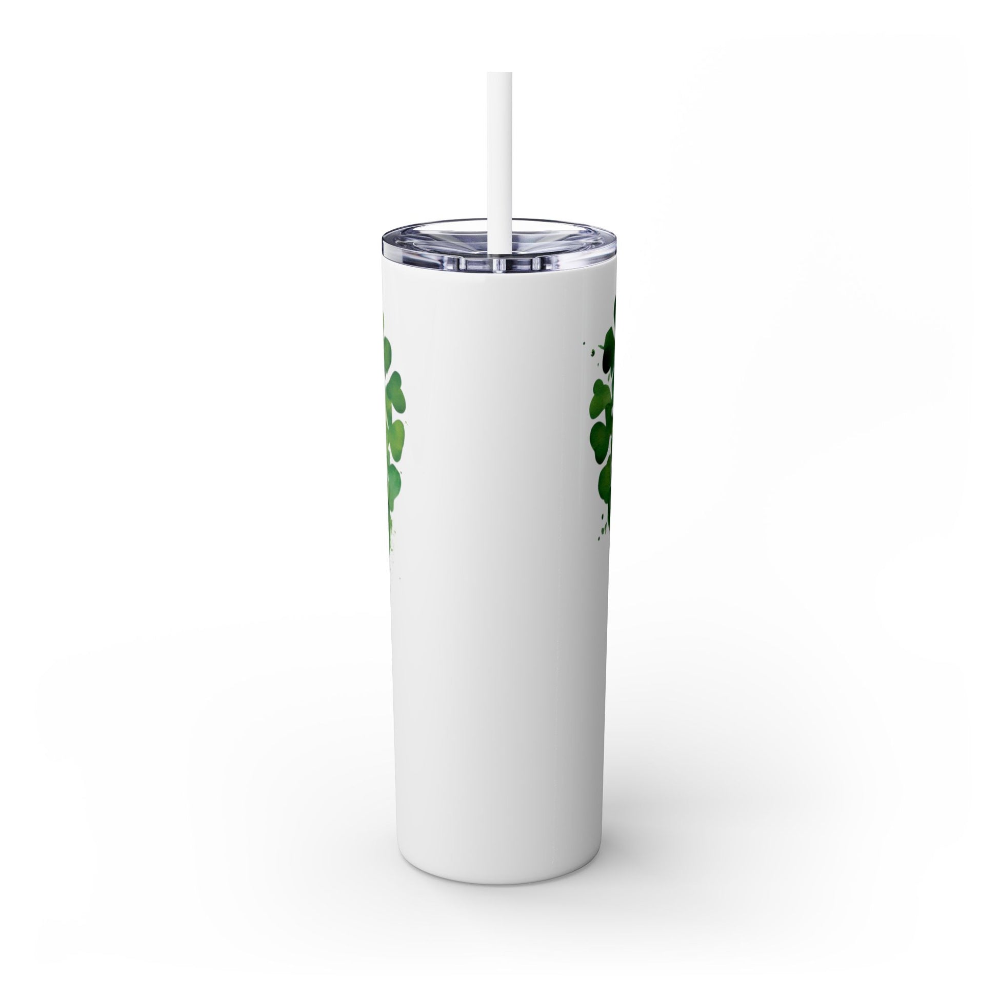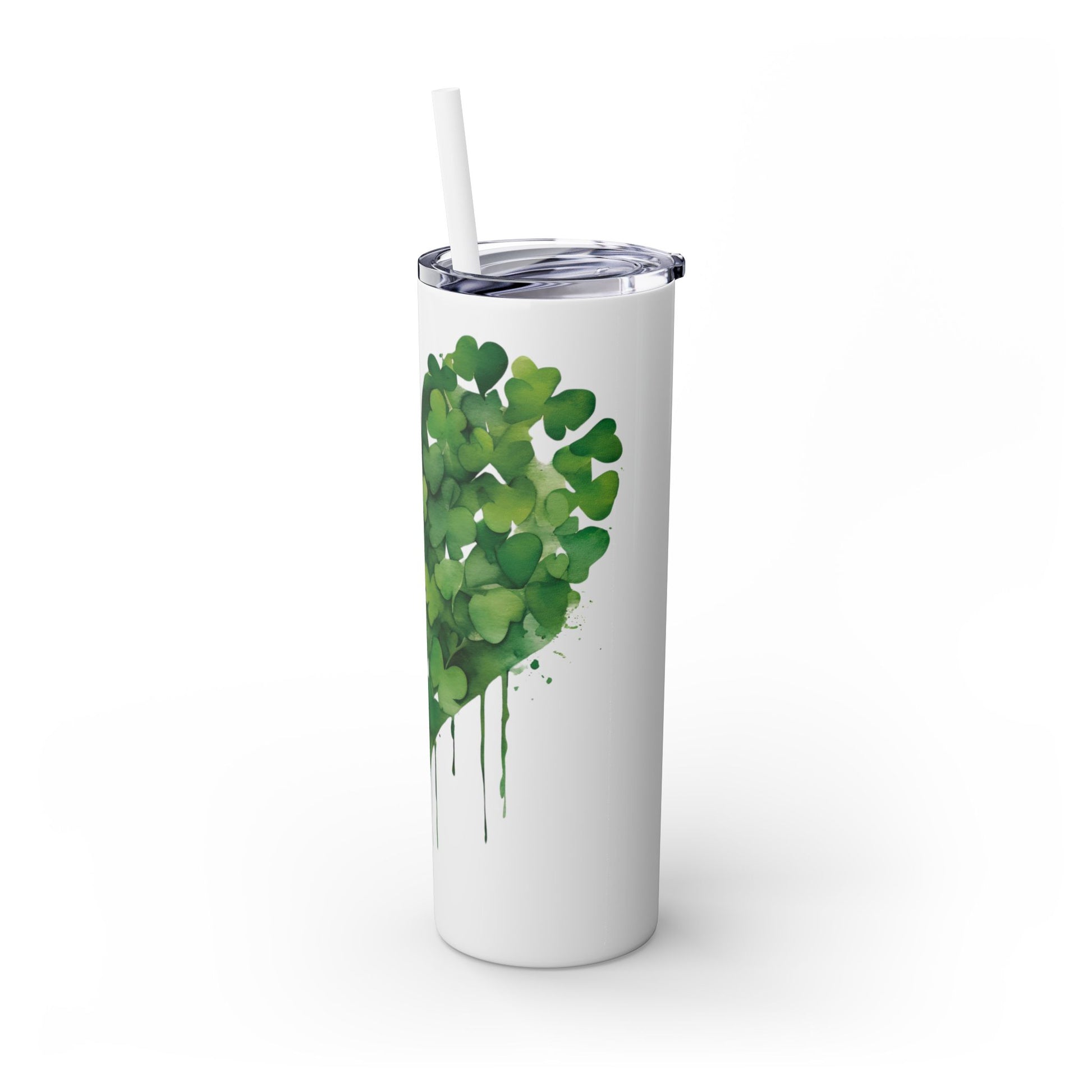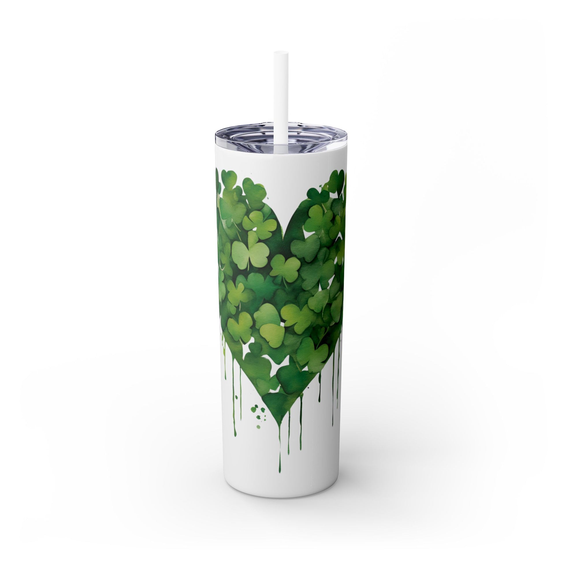 Bring a touch of luck to your day with this Green Clover Heart tumbler. Featuring a bold heart made entirely of shamrocks with a dripping paint effect, this 20oz stainless steel insulated cup is perfect for coffee, tea, water, or smoothies. Its double-wall construction keeps drinks hot or cold for hours, and the included straw makes sipping on the go easy. Product features - Double wall insulation keeps drinks warm for 12 hours and cold for 24 hours - Lid with a color-matching straw for convenient sipping - Vibrant colors with crisp printing matching any design - Made with stainless steel and non-toxic, BPA-free plastic materials - 20oz size with tapered shape and slim design Care instructions - Hand wash only 🎨 Artist’s Note: We design all of our products in-house, ensuring each piece reflects our original creative vision. We use tools like Photoshop, Canva, and Placeit to bring our ideas to life with original typography, illustrations, and layouts. A trusted production partner prints and ships each item, allowing us to focus on creating meaningful designs and offering a personalized customer experience.