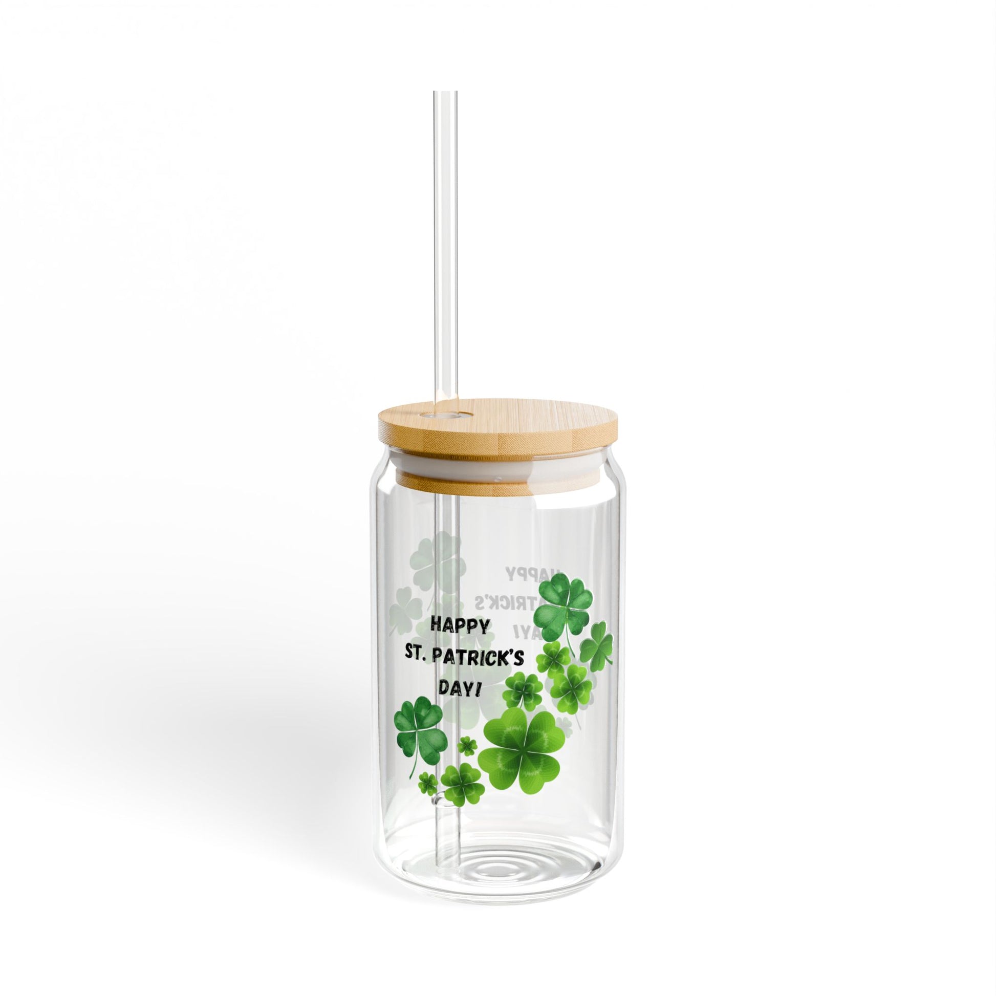 🍀 Celebrate St. Patrick’s Day with this festive 16oz glass sipper, decorated with vibrant green shamrocks and Happy St. Patrick’s Day! in bold lettering. Perfect for sipping iced coffee, tea, water, or your favorite festive drinks! Product features - 16oz capacity - Vibrant colors - Clear tempered glass construction - BPA Free - Hand wash only Care instructions - Hand wash only - Dry thoroughly with a towel or air dry with the lid removed