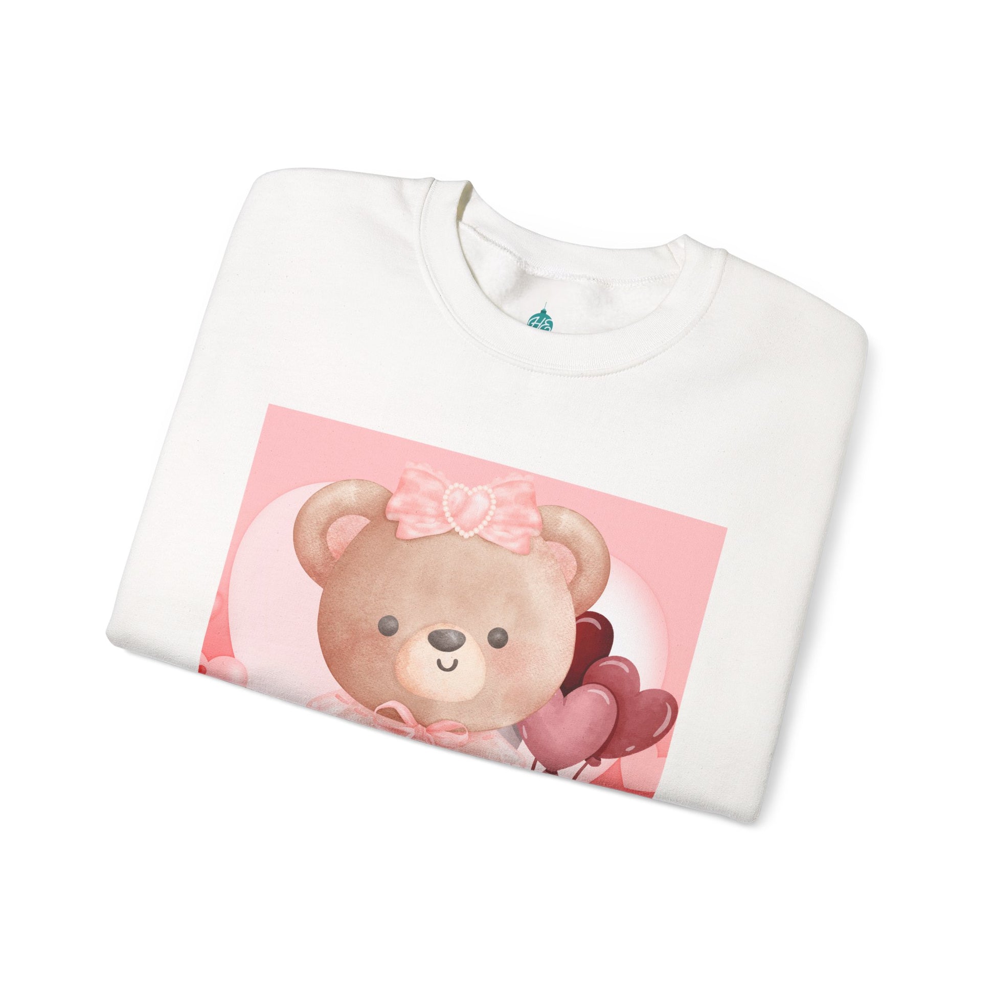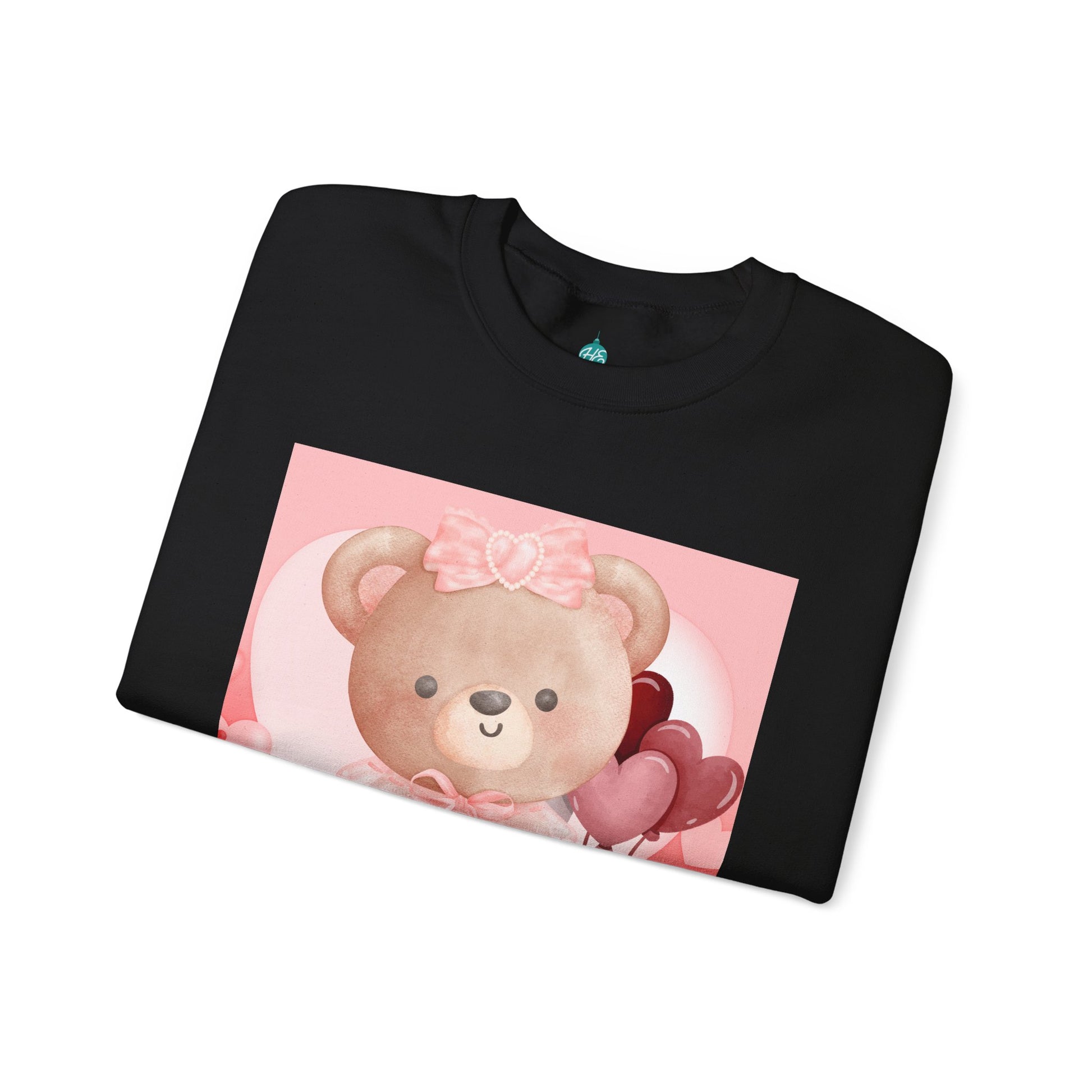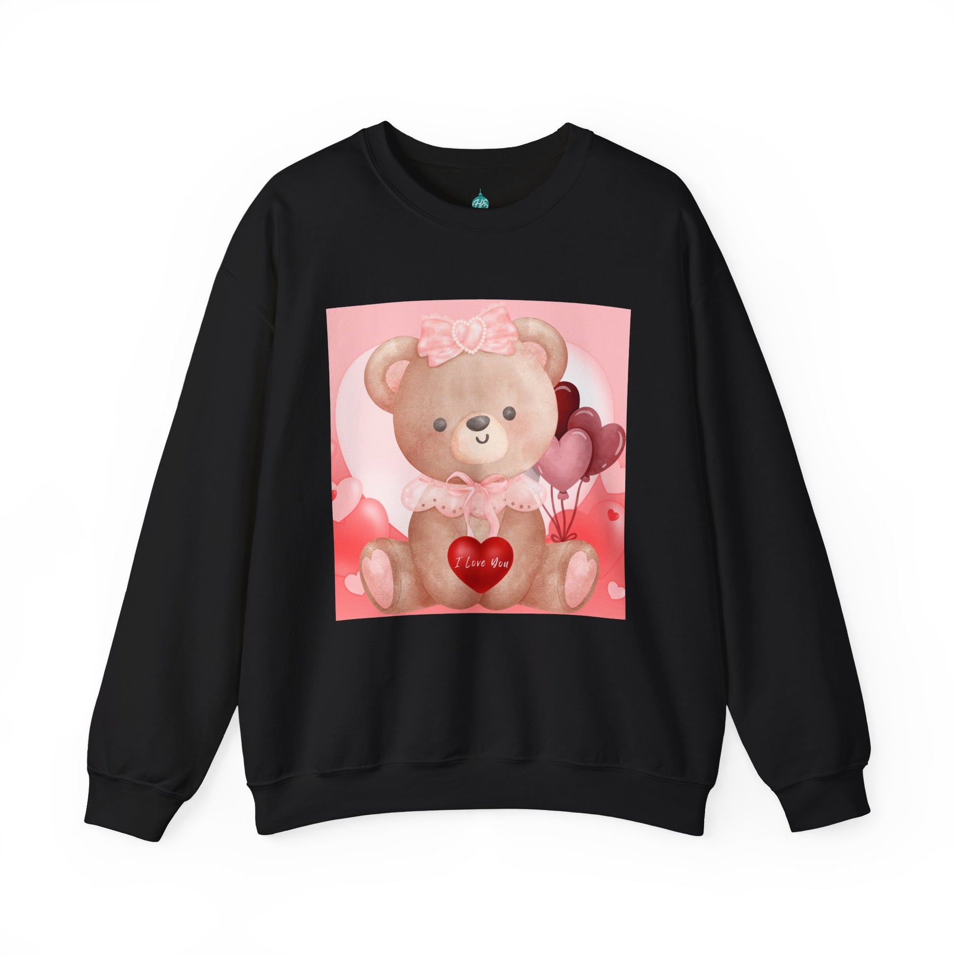 Adorable sweatshirt featuring a sweet teddy bear holding a red heart that reads “I Love You.” This pastel pink and blush design is perfect for cozy romantic vibes and makes a charming gift for loved ones.