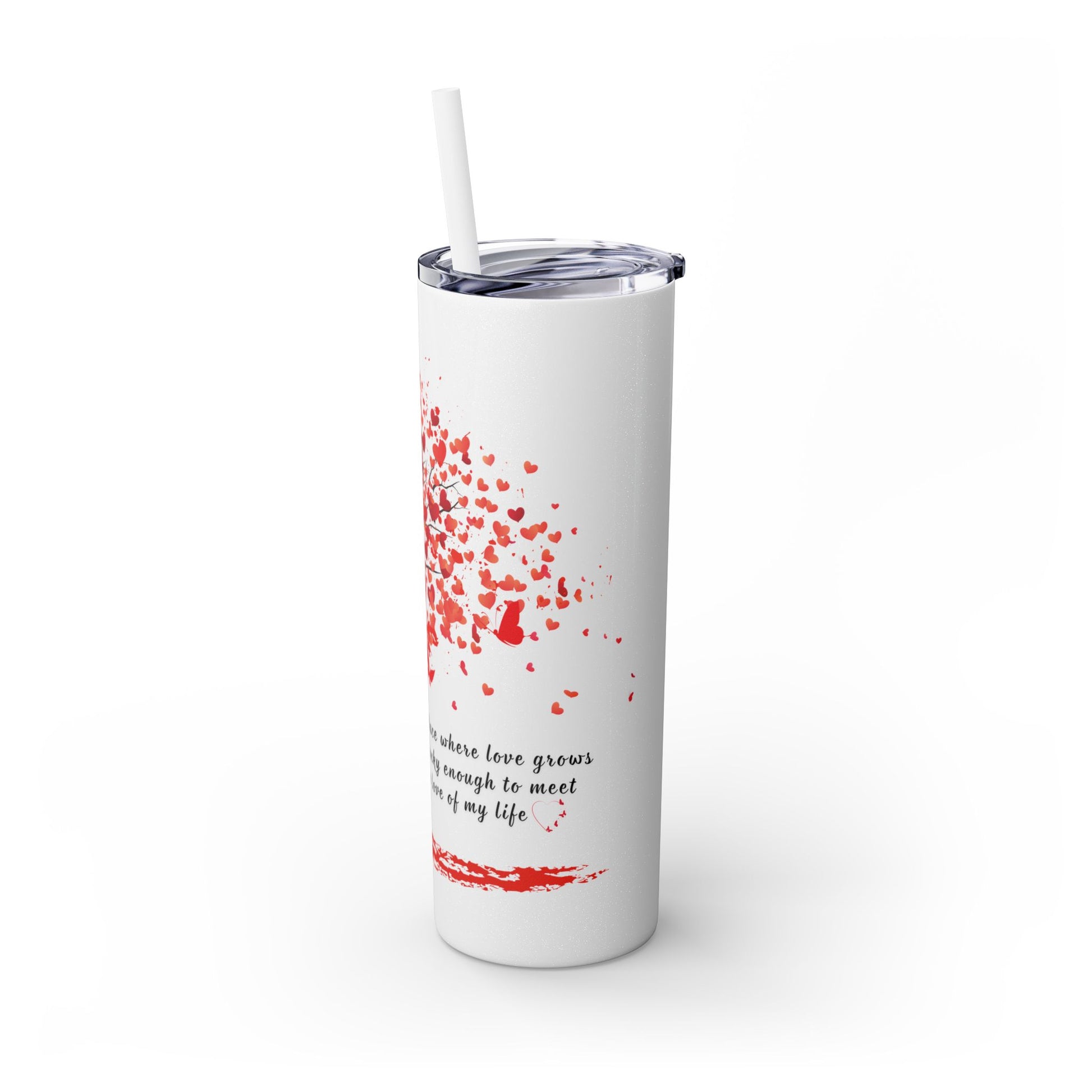 Tree of Love Skinny Tumbler - 20oz, Love Tumbler, Insulated Cup, Romantic Couples Gift, Anniversary Gift, Gift for Her, Heart Drinkware