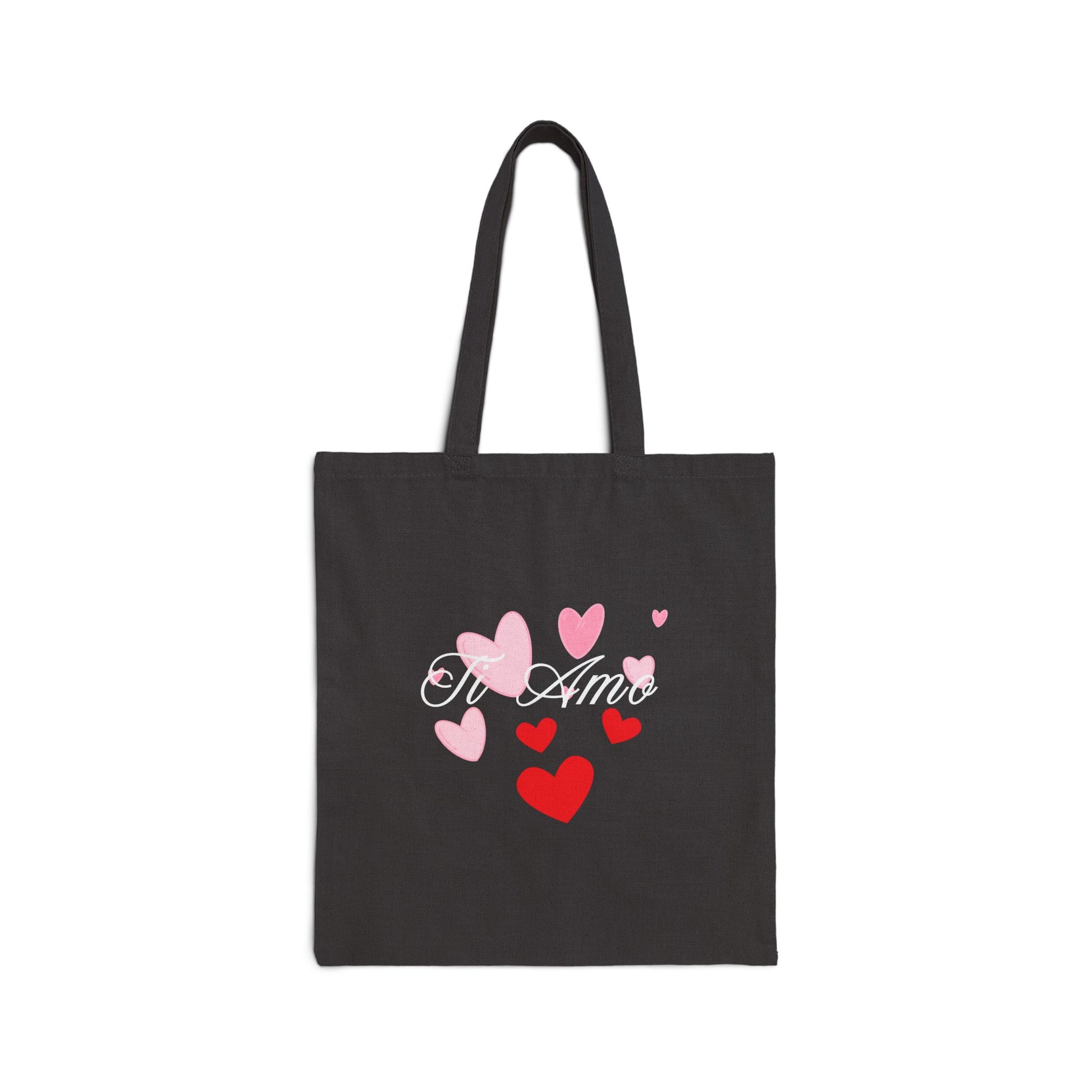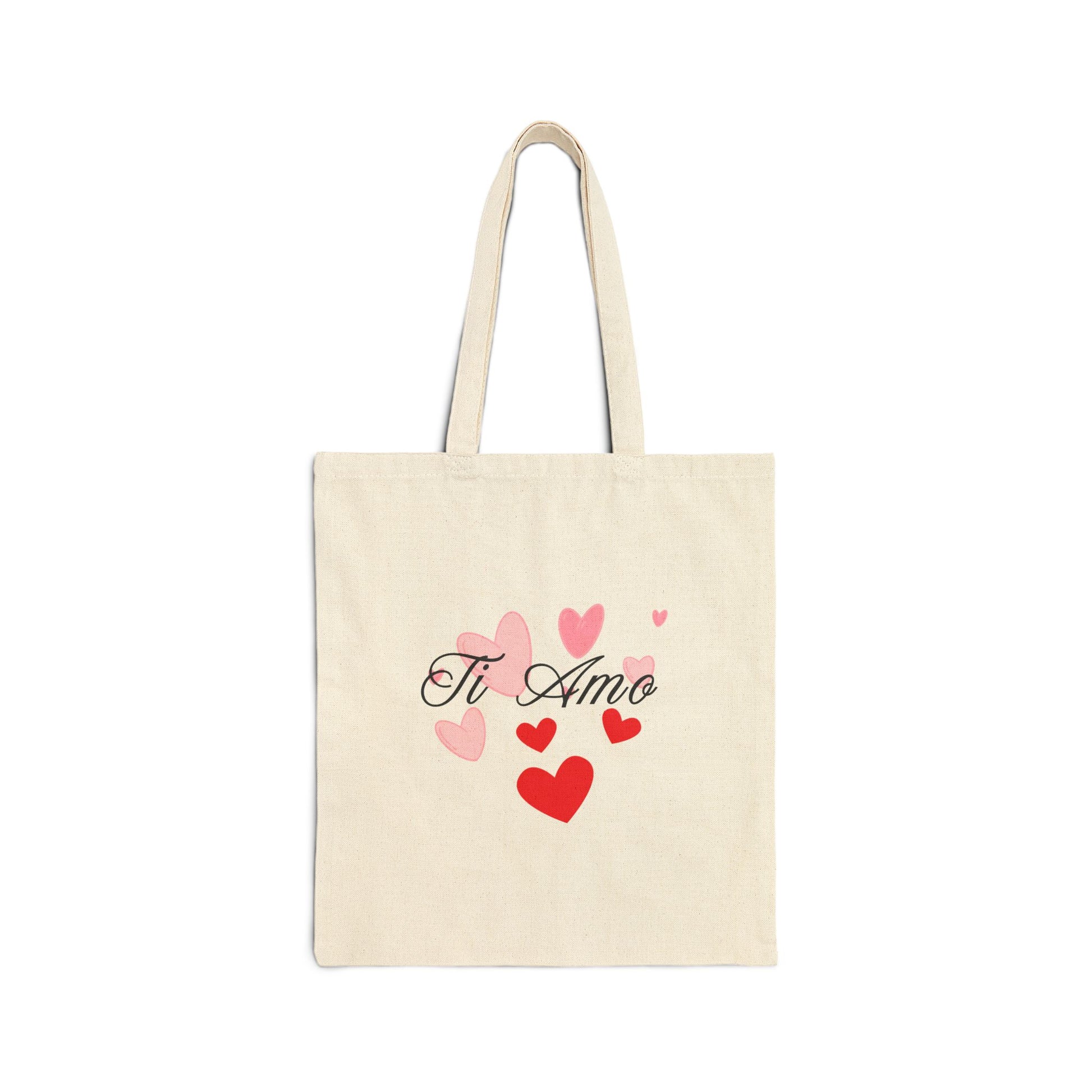 This stylish and durable tote bag features a design with red and pink hearts and the phrase "Ti Amo" meaning "I love you" in Italian. Perfect for spreading love and positivity, this tote bag is a great accessory for romantic dates, shopping trips, or casual outings. Ideal for those who appreciate heartfelt gestures and want to add a touch of romance to their everyday life.
