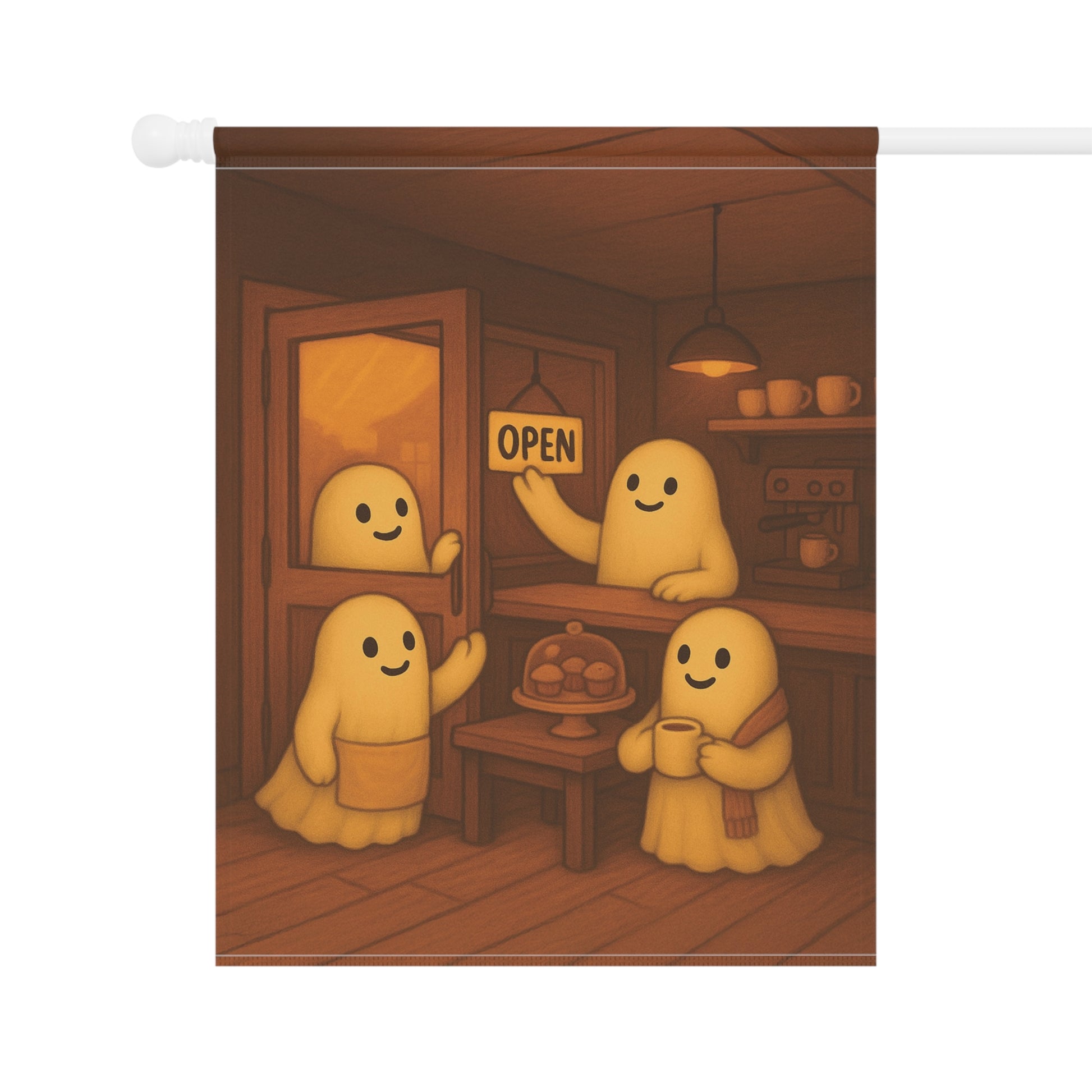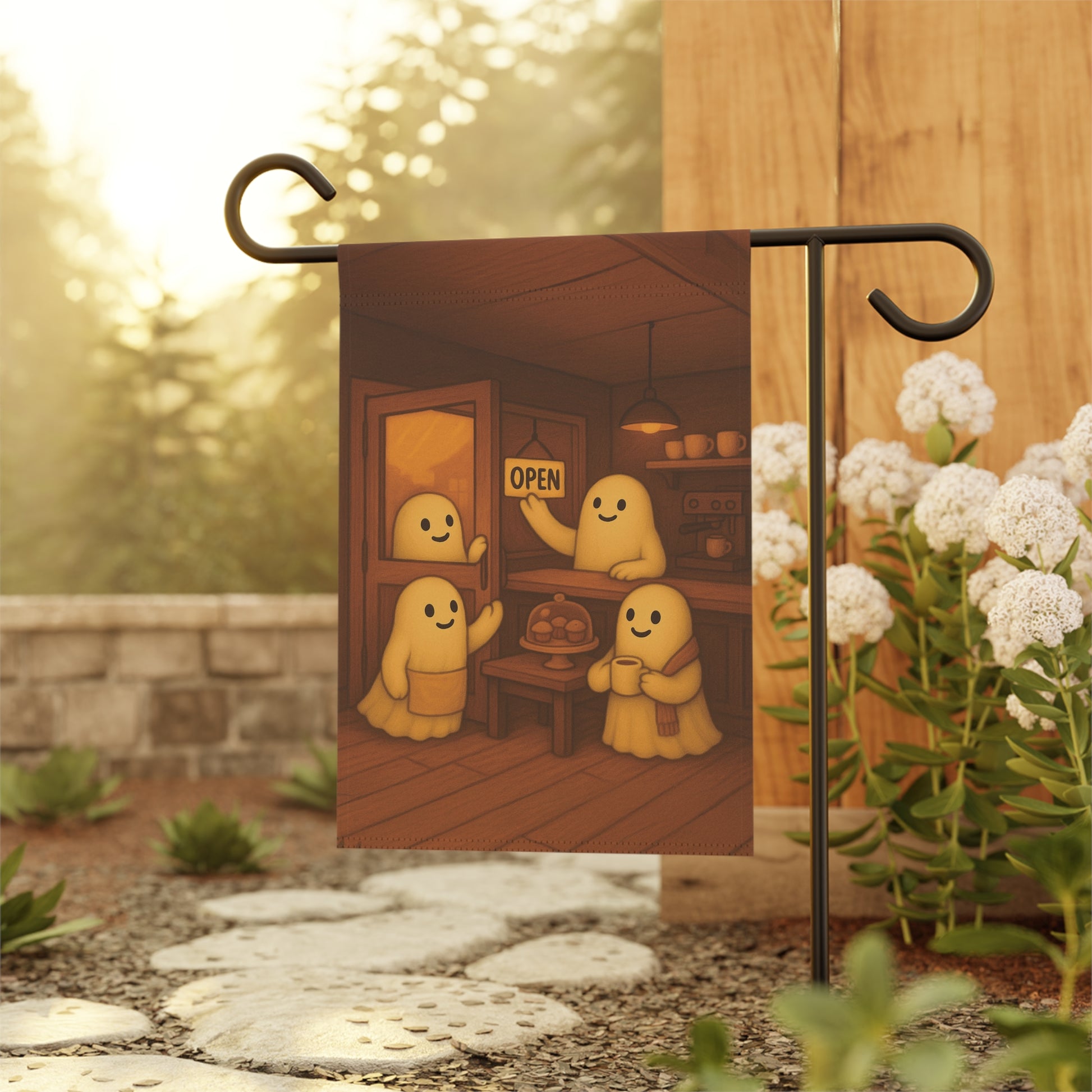 Add a warm and inviting touch to your outdoor space with this charming garden banner. Perfect for celebrating the autumn season, this decorative piece features a delightful bakery scene that brings a sense of coziness and joy. Its warm colors and whimsical design are sure to catch the eye of visitors, making it an ideal addition for Halloween gatherings. Each piece is thoughtfully designed by us with the help of AI, then professionally produced by a trusted print provider to ensure stunning quality and lasting beauty.