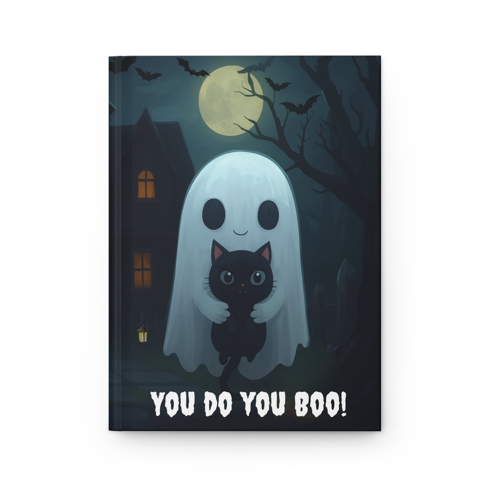 Ghost with Black Cat Library Notebook, Ruled Line Journal for Creepy Writing, Spooky Notetaking, Scary Stationery Gift, Halloween Journal