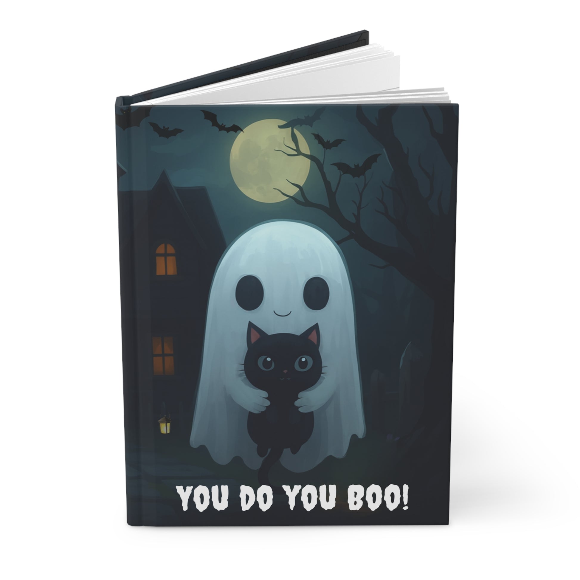 Embrace your creative spirit with this hardcover journal, designed for those who appreciate a touch of whimsy in their everyday lives. Adorned with enchanting ghostly illustrations, this journal serves as a perfect canvas for your thoughts, dreams, and sketches. The image is thoughtfully designed by us with the help of AI, then professionally produced by a trusted print provider to ensure stunning quality and lasting beauty. Product features - Matte laminated cover for durability and smooth appearance. - Vibrant colors achieved through advanced printing techniques. - Convenient perforated pages for easy tear-away. - Flexible casewrap binding with a sewn spine. - Contains 150 lined pages perfect for writing and note-taking. Care instructions - Use a soft, clean and dry cloth to gently brush any dust or dirt off from the center of book outwards.